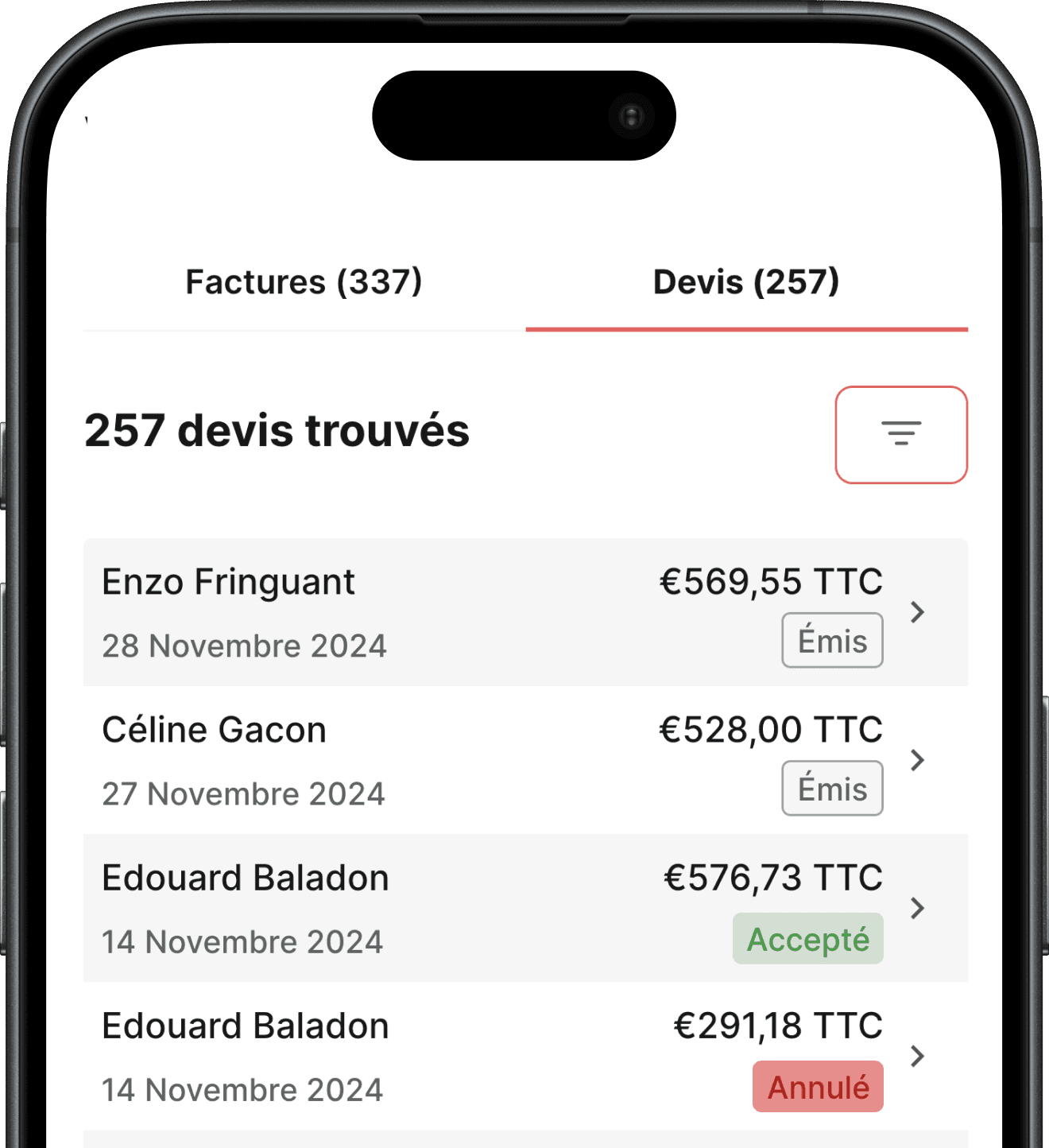 Créer des devis et des factures en quelques clics : Générez rapidement des documents conformes aux exigences légales, incluant toutes les mentions obligatoires.
