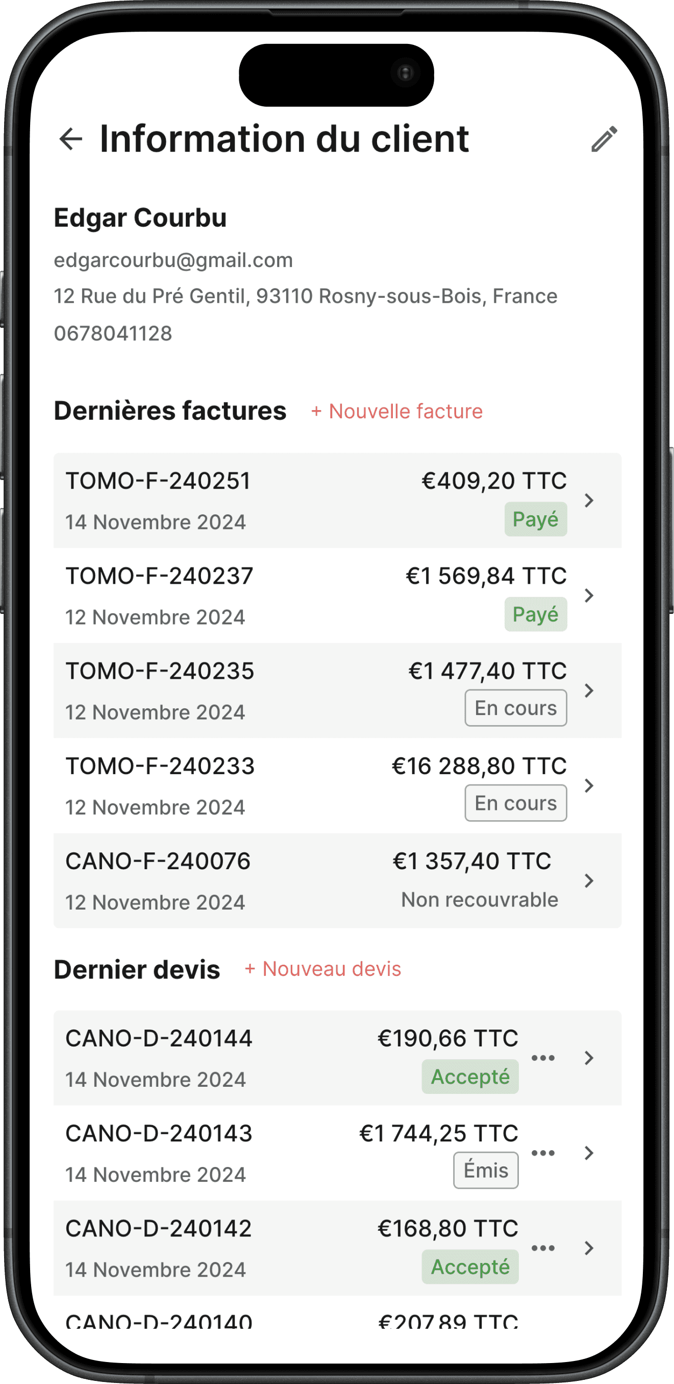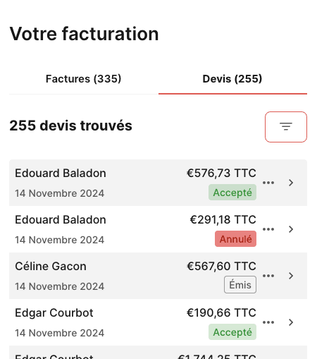 Le module de facturation est pensé pour que trouviez toutes les informations utiles en un clic :